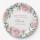 Pink Floral Rose 1st Birthday Party Plate