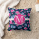 Pink Floral Roses Pattern Custom Monogram Cushion