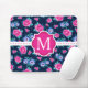 Pink Floral Roses Pattern Custom Monogram Mouse Mat