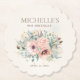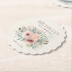 Elegant, custom birthday party paper coasters for women. Decorated with beautiful blush pink watercolor flowers and sage green leaves on a sparkling glittery gold background. Personalised with the name of the guest of honour and her party date. Contact me for assistance with customisation or to request matching or coordinating Zazzle products for your party.