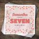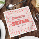 Make her girl seventh birthday party shine with this stylish custom cocktail napkin featuring bold pink seven typography and a cute floral pattern. The simple template showcases a minimalist and modern design, enhanced with elegant chic flowers for a sweet, sophisticated touch. Highlighting the number 7, this napkin pairs beautifully with matching custom party supplies, adding a personalised and charming detail to her special celebration.