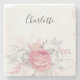 Pink floral silver foliage white name elegant stone coaster
