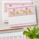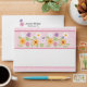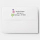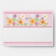 This cute envelope features a pretty floral pattern with rickrack on the front, pink stripes on the inside flap, a cute flower and bird on the back flap, and a personalised name and return address. This design is simple and feminine, and it will be perfect for birthday party invitations, baby showers, and new baby announcements. Modify the text to fit your needs.