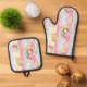 Pink Floral Striped Oven Mitt & Pot Holder Set