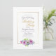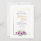 A gold bordered pink and blue floral surprise birthday party invitation.