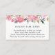 A book request insert card for baby shower. Featuring pink florals and greenery poem: "ONE SMALL REQUEST, WE HOPE NOT TOO HARD