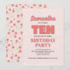 Celebrate her big day with this girl’s tenth birthday party invitation! Featuring pink "ten" typography, a cute floral pattern, and a simple template, this design is perfect for a modern, minimalist celebration. The whimsical calligraphy script adds a playful touch, while the elegant chic flowers bring a stylish whimsy vibe. Personalise this fun and charming invite today for a memorable birthday celebration!