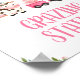 Sweet farm themed birthday party table top sign featuring some farm animals and a pink floral arrangement. This design also features a pink barn and tractor.
