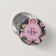 Pink Floral Tulip Pattern Monogram 3 Cm Round Badge