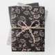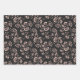 Pink Floral Vine Pattern on Brown, Gray & White Wrapping Paper Sheet