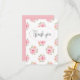 Pink rose repeat pattern on white background “Thank you” in typography. Perfect for any occasion.