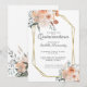 Pink Floral Watercolor Gold Frame Quinceanera Invitation