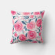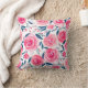 Throw pillow with romantic loose watercolor pink roses floral design.