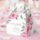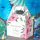 The design features large pink blossoms on lush greenery, creating a fresh, botanical look. Customise the box with your names and wedding date for a meaningful keepsake. Perfect for candies, small gifts, or guest thank-you tokens—ideal for spring, garden, or outdoor weddings.