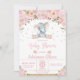 Pink Floral Whimsical Elephant Girl Baby Shower Invitation