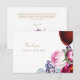Pink Floral Wine Bridal Shower Thank you Card. Simple. Gold text. Message.