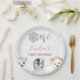 Pink Floral Winter Animals 1st Birthday Paper Plat Plate
