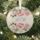 Pink Floral Wreath Elegant Wedding Anniversary Glass Ornament. Elegant Pink Floral for your beautiful wedding anniversary. Has a Monogram on it. It is designed for your 25th Wedding Anniversary, but you can customise it. Get it soon