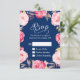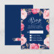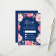 Pink Floral Wreath Navy Blue RSVP Reply Card