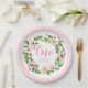 Pink Floral Wreath Peony 1st Birthday Party Paper Plate