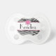 This product is made from a black and white zebra print with a pink frame in the centre. A cute pink flower sits on top of the frame. You may customise to add your own name