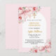 Pink florals bow arch First Communion Invitation