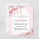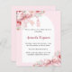 A white arch frame and light pink background. Decorated with pink flowers and pink bows and a baby bottle. Personalise and add a name and details.