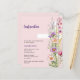 A blush pink background, with a large white cross decorated with pink and purple flowers. Personalise and add the name and details details.
