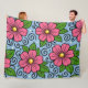 Pink Florals with Green Leaves and Curved Details Fleece Blanket