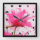 Pink Flower Abstract Paint Splatter Square Wall Clock
