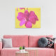 Pink Flower Art Lime Yellow Background Canvas Print