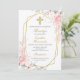 Pink flower Baptism invitation girl in Spanish, invitación de bautizo para niña