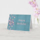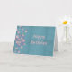 Cute pink and purple flowers with a gold fleck on a blue background which has a recycled paper look. This pretty greeting card is easy to customise for any occasion. The inside is blank for your own personal message.
