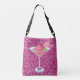 Pink Flower Cocktail Faux Glitter Crossbody Bag