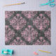 Pink Flower Damask with Skulls on Grey Decoupage Tissue Paper