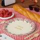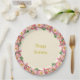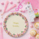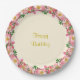 Pink flower garland on ivory Happy Birthday Paper Plate. Text can be personalised for other events!