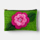 Pink Flower Grass Green Leaf Artisan Crochet Print Accessory Pouch