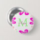 Pink flower monogram add name letter green leaf 6 cm round badge