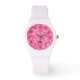 Personalise this bold pink flower patterned watch for the girl who loves her shades of pink. Just edit the formatted name monogram text in the easy Zazzle text editor. Your choice of lots of watchband styles and colours.
