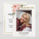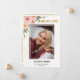 This graduation announcement features pink flower, graduate's photo, name, graduation year, along with more information and messages on the back.
