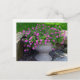 Pink petunias spill over the sides of a decorative planter. With matching postage.