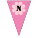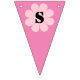 Flower power baby pink bunting flags with, “Congratulations.” Text and background flag colour can be customised.