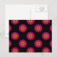 This postcard features a fractal art floral design with pink, yellow, red, and blue colours on a black background. Background colour may be customised.