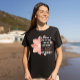 I am absolutely thrilled to tell you about the amazing white t-shirt for women with a custom motivational quote in bold black grunge typography and pink script handwritten calligraphy featuring along with a delicate pink flower.