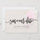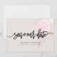 This design features a soft pink watercolor flower behind the words "save the date" in bold black handwritten script against a faux paper background. Couple's names and wedding details are displayed below and can be customised. Graphics ©Create The Cut