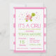 Pink Flower Stripes Turtle Baby Shower Invitation