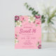 Customisable affordable paper 16th birthday invitations featuring pretty watercolour roses, anemones and clematis on a pink background.