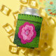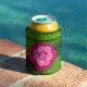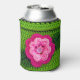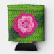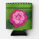 Pink Flower with Pearl Button Light Green Crochet Can Cooler