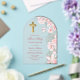Pink Flowers and Butterflies Arch First Communion Acrylic Invitations