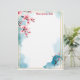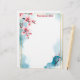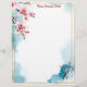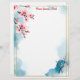 Pink cherry blossoms in the upper left and lower right corners of a golden frame, on a blue and white watercolor background make this stationery perfect for your correspondence, newsletters, or invitations. Lovely Asian-inspired theme.